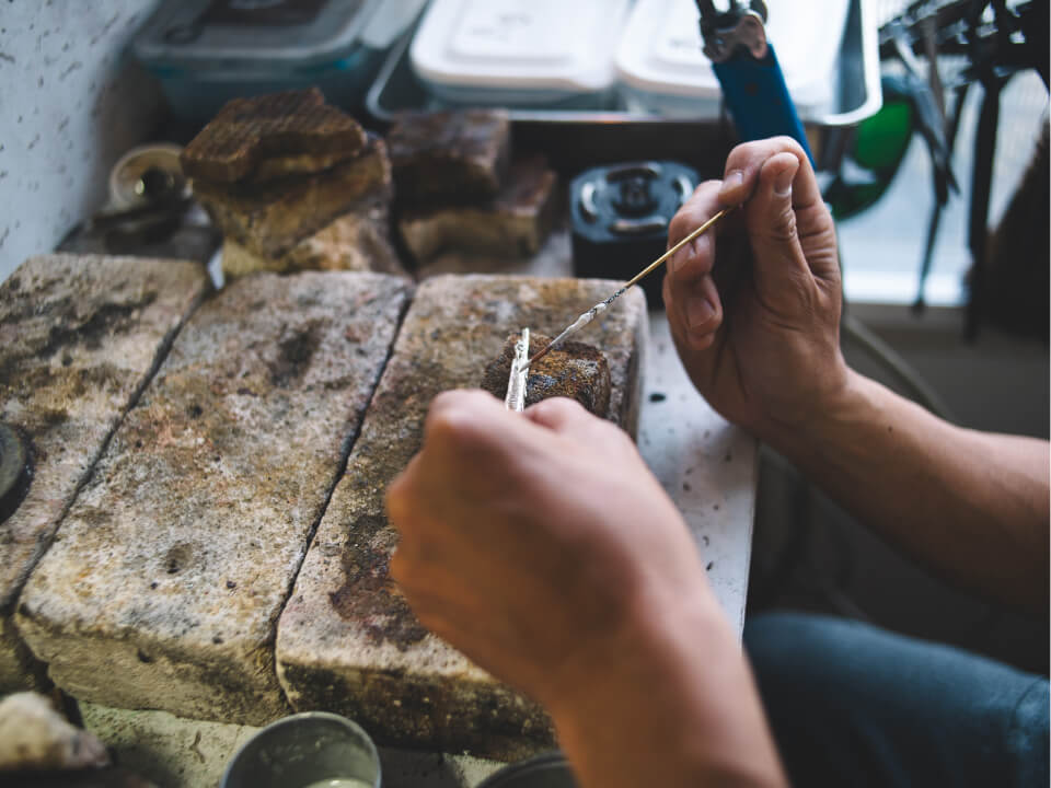 火を使い接合し、磨き上げるまでを経験します。